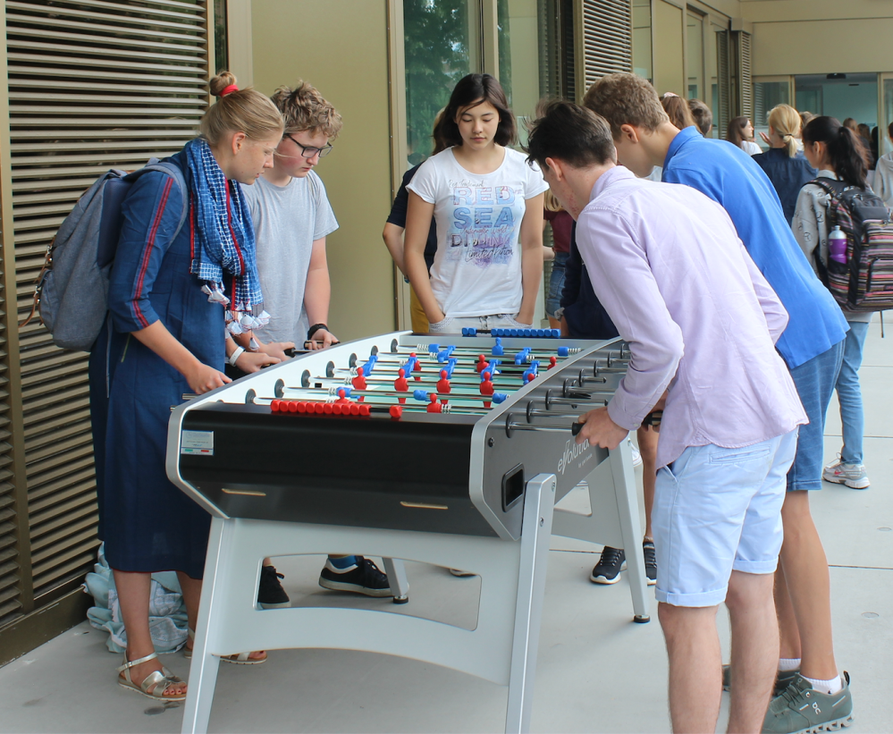RANGVERKÜNDIGUNG, EHRUNGEN UND TÖGGELIKASTEN Am 6. Juli 2020 war es so weit: Die Siegerinnen und Sieger wurden geehrt, die Preise übergeben. Die übrigen Borromini-Hunderter wurden in die Tischfussball-Nachwuchsförderung der KKN investiert. Der Tisch steht ab sofort im Untergeschoss des Neubaus bereit. Viel Spass beim Spielen!