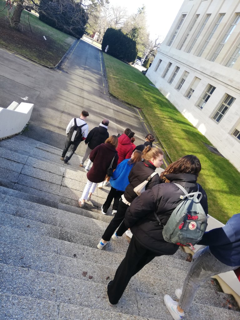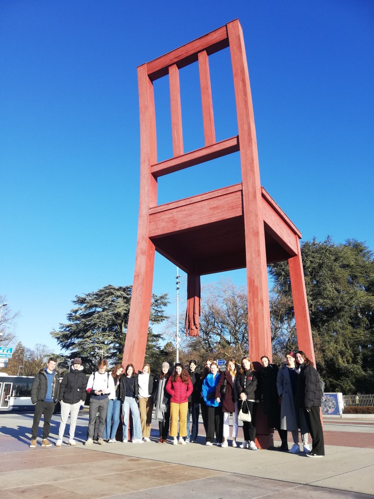 Dieses Jahr mussten wir Corona-bedingt ganz kurzfristig ein Alternativprogramm zum Sprachaufenthalt in Montpellier auf die Beine stellen. Wir konnten mit den 6.-KlässlerInnen neben Sprachkursen auf Zoom, eine 2-tägige Reise nach Genf organisieren. Unter strahlend blauem Himmel und in Begleitung einer aufgestellten SchülerInnengruppe, erkundeten wir die Genfer Altstadt, den Uno-Palast und das Rotkreuzmuseum.