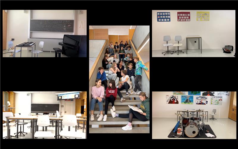 Klassenprojekt aus der Sonderwoche 2022. Die 2a mit ihren Klassenlehrpersonen Lukas Maag und Rony Frei, Seraina Janett als Musik-Lehrperson und Markus Lauterburg als Instrumentallehrperson